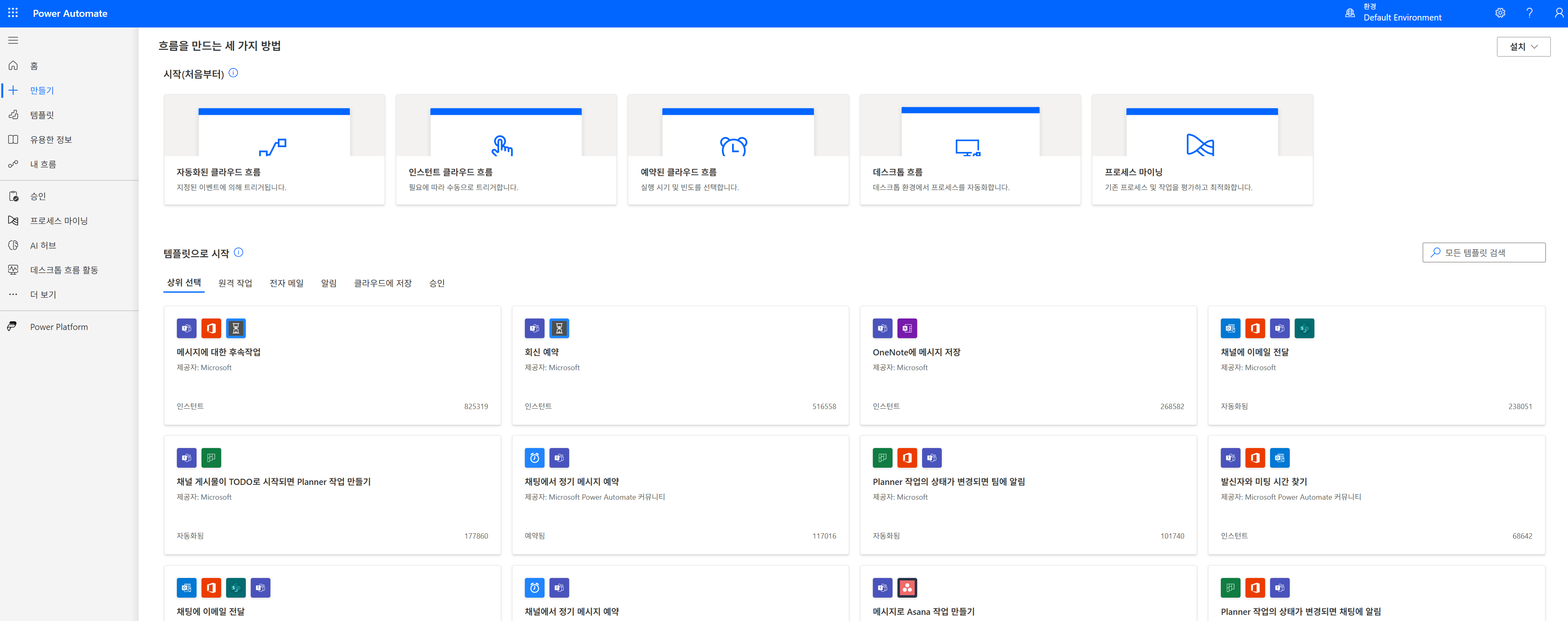 - Power Automate > + 만들기 > 자동화된 클라우드 흐름